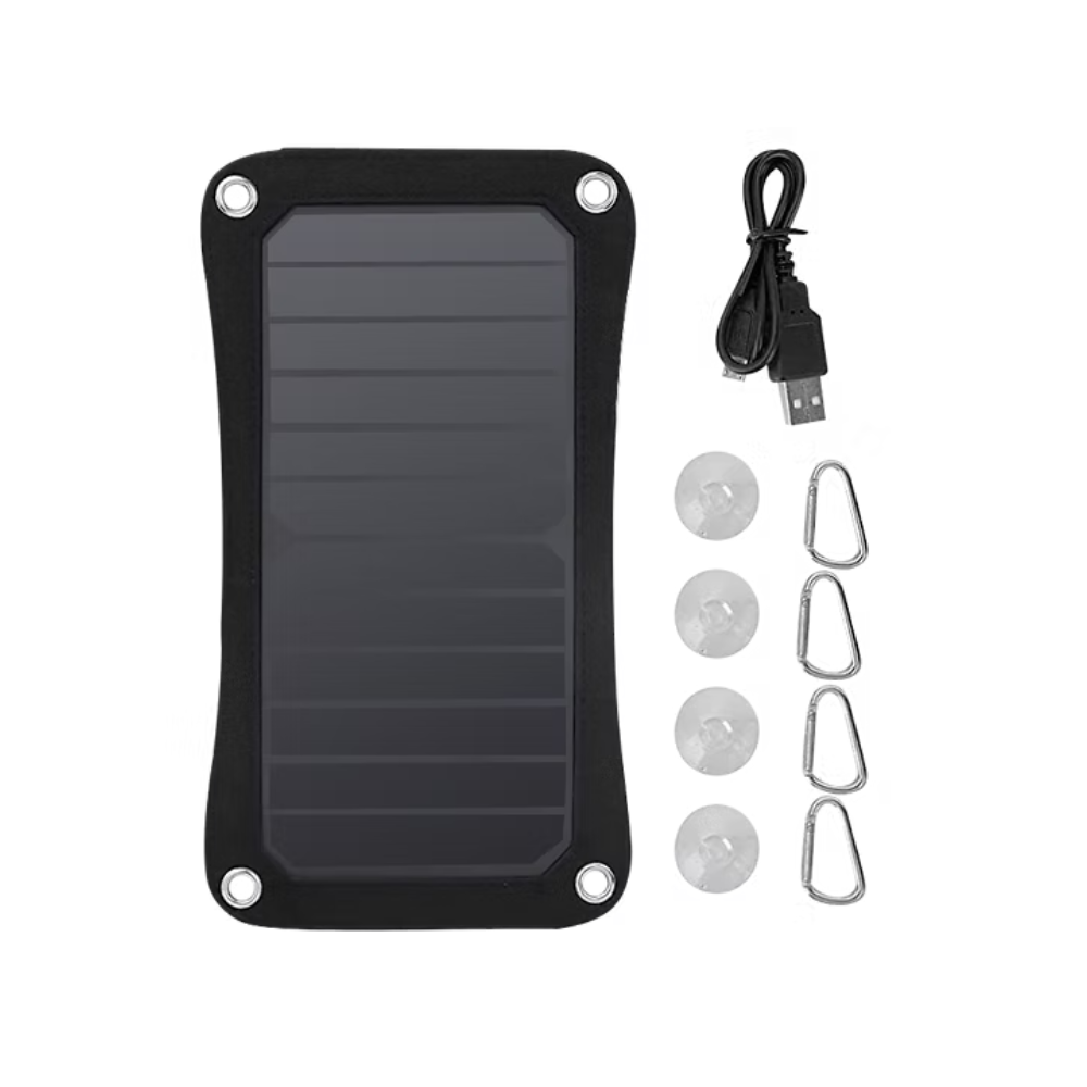 Projetado para máxima portabilidade, este painel solar transforma a luz do sol diretamente em energia para carregar seus aparelhos via USB. Construído com material resistente à água, ele vem acompanhado de um kit completo com mosquetões e ventosas para ser facilmente fixado em mochilas, janelas ou barracas. É importante notar que o painel não armazena energia, sendo ideal para carregar um power bank ou seu dispositivo diretamente sob o sol. Características: